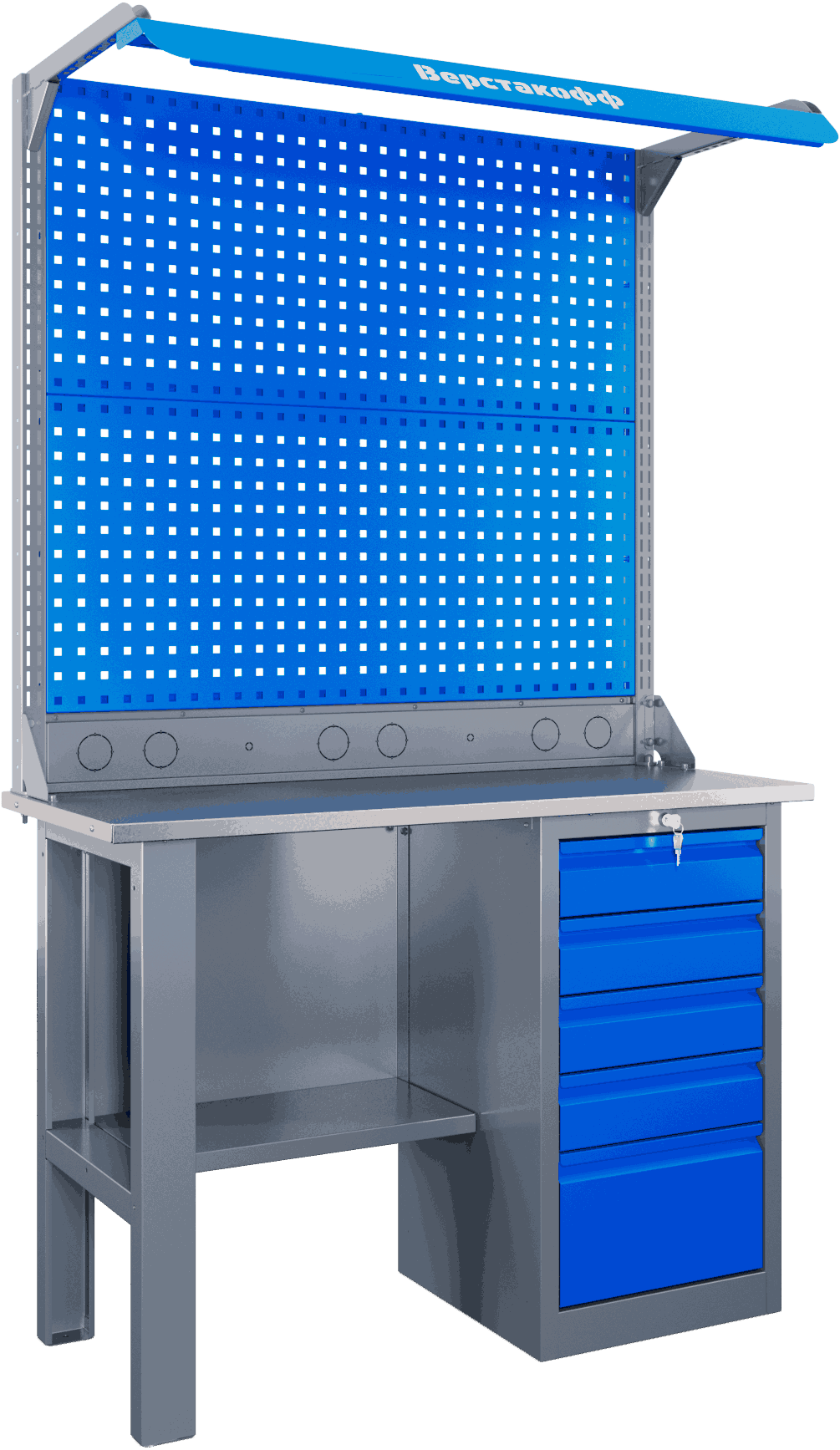 Изменились и перфорированные экраны верстаков Self: теперь все они представляют собою панели с квадратной перфорацией (12×12 мм, шаг 38 мм), что позволяет использовать для них навесные аксессуары других серий верстаков – например, Technic или Mechanic. Металлические панели отличаются прочностью и выдерживают нагрузку до 21 кг.